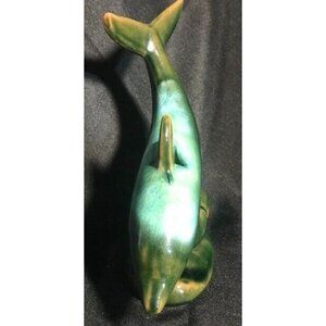 Vintage Blue Mountain Pottery Canada Dolphin Figurine Green Drip Glaze BMP