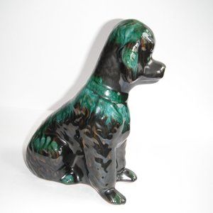 Vintage Blue Mountain Pottery Ceramic Dog Figurine Statue Sculpture Green/Black