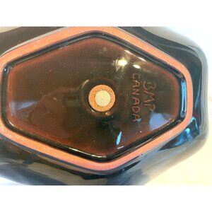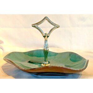 This vintage Blue Mountain Pottery (BMP) dish tray features the brand’s iconic green-blue drip glaze with a sculptural chrome-tone handle. The wavy rim adds elegance, while the handle makes it practical for carrying or displaying. A wonderful blend of mid-century modern charm and everyday usefulness.