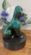 This vintage Blue Mountain Pottery poodle figurine is a striking example of Canada's beloved mid-century ceramic craftsmanship. Made in Collingwood, Ontario, this elegant piece features the iconic emerald-to-black drip glaze, hand-applied for a one-of-a-kind pattern that highlights the detailed fur texture and proud stance of the poodle.