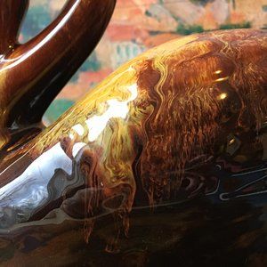Don’t get me wrong, I love a green Blue Mountain Pottery swan planter, but the Harvest Gold drip glaze swans, *chefs kiss*. They’re just so damn pretty and the contrast really brings out the detail in the glaze. This piece is in great shape - there are no cracks or chips. There is some crazing which can only be seen in bright light.