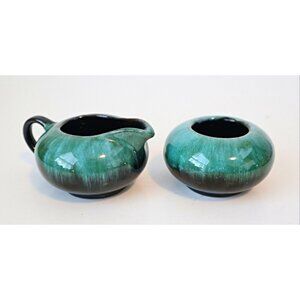 For your consideration is a Blue Mountain Art Pottery charger plate, teapot, creamer and sugar, circa 1970's.