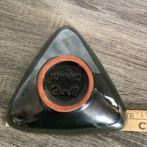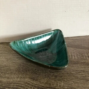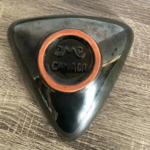 MCM style drip glaze triangle shaped dish. Made by Blue Mountain Pottery in Collingwood Ontario. This factory has since closed it doors and therefore this is one of the last in existence.