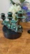 Vintage Blue Mountain Pottery Triple Candle Holder Pair Green Drip Glaze Retro