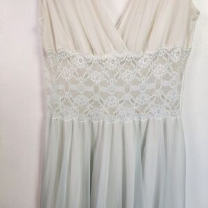Vintage Blue Nylon Maxi Nightgown Lingerie Dress Lace Deep VNeck Small Fairycore
