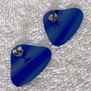 Vintage Blue Painted Metal Rippled Triangle Pierced Earrings Costume Jewelry