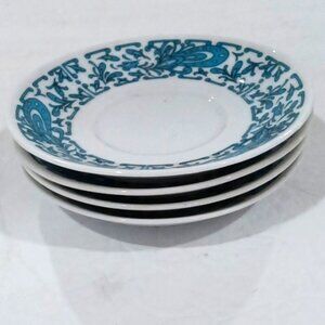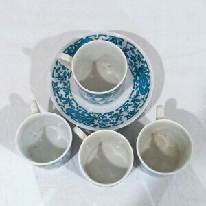 Vintage Blue Paisley Demi-Tasse Espresso Cups & Saucers Set of 4 Bone China