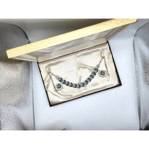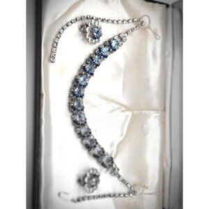Vintage Blue Rhinestone Demi Parure Set in Original Box – Necklace & Earrings