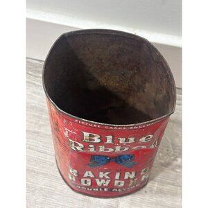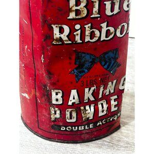 Vintage Blue Ribbon Baking Powder Tin Can Large 16 OZ