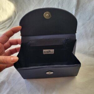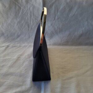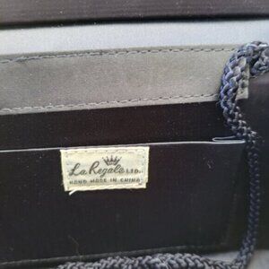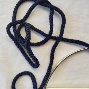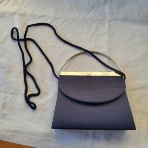 silver tone handle with rope strap . strap can be tucked away inside purse for Handbag use