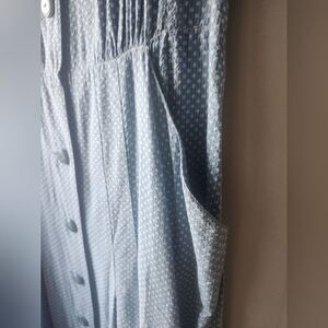 Vintage Blue Seersucker Polkadot 50s Midi Dress Button Front Pockets Collar
