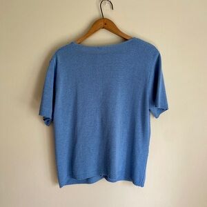 Vintage Blue Short Sleeve Knit V Neck Sweater Cardigan