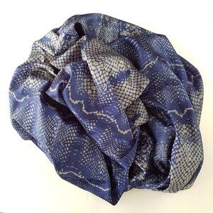 Vintage silk scarf with silver-gray design on a dark blue. Soft and lightweight, lovely as evening shawl, long head & neck scarf or shoulder wrap for special occasions like weddings, parties and celebrations.