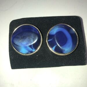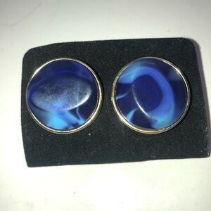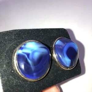 Elegant pierced earrings with a blue swirl design. Perfect for adding a touch of vintage charm.