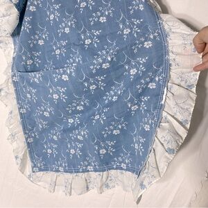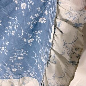 Vintage Blue White Floral Pillowcases With Ruffle Thrim x2