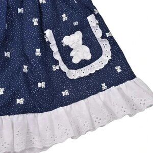 Vintage 80's Blue White Ruffle Eyelet Teddy Bear Long Sleeve Prairie Dress