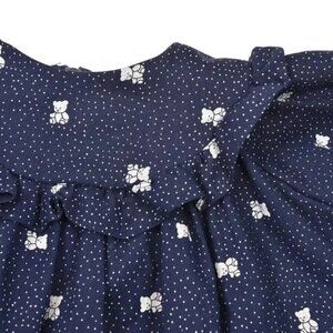 Vintage Blue White Ruffle EyeletTeddy Bear Long Sleeve Prairie Dress Size 24M