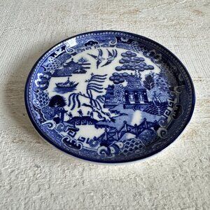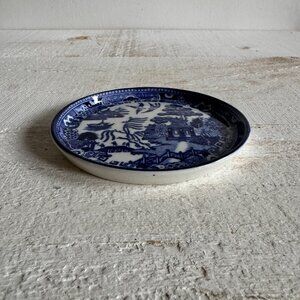 Vintage Blue Willow Trinket Dish - Blue and White Scenic Pottery Plate
