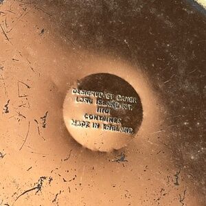 Vintage Blue and Gold Daher Decorative Tin. Bottom is stamped designed in Long Island, NY, but made in England. Good used condition, see photos for details of wear. Measures approx. 8" wide, 3" tall.