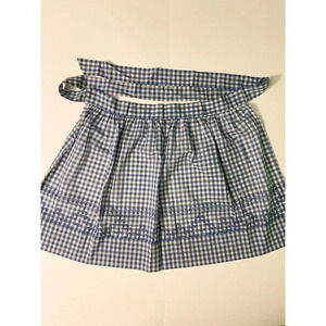 Vintage Blue and White Checkered Half Apron One Pocket 19 Inch Long Tie Back