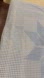 Vintage lightweight cotton blue and white gingham tablecloth. The centre shows a darker blue 8 point star design and there is a cross stitch “chicken scratch” embroidery in white.