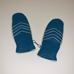 Vintage Blue and White Leather Mittens - Women’s Size Medium