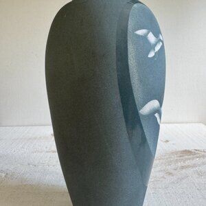 Vintage Blue and White Pottery Vase with Seagull Bird Design