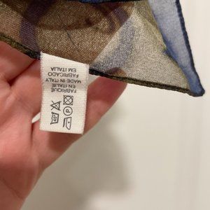 Vintage blue scarf with olive coloured flowers. Made in Italy.