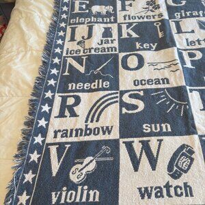 Vintage Blue/White Cotton Alphabet Tapestry Blanket Baby Toddler Nursery Decor