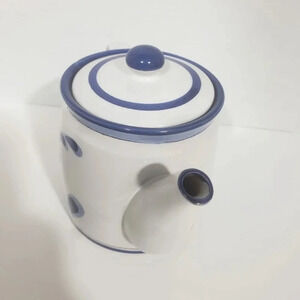 Vintage stoneware/ceramic blue/white teapot with floral pattern.