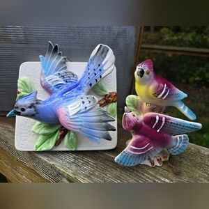 Very collectible ceramic bluebird and blue Jay wall plaque.