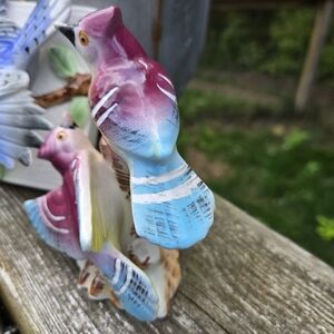 the stand alone birds are in good condition although the tail of higher one has been repaired but very securely well. Its about 5" tall x 5" wide.