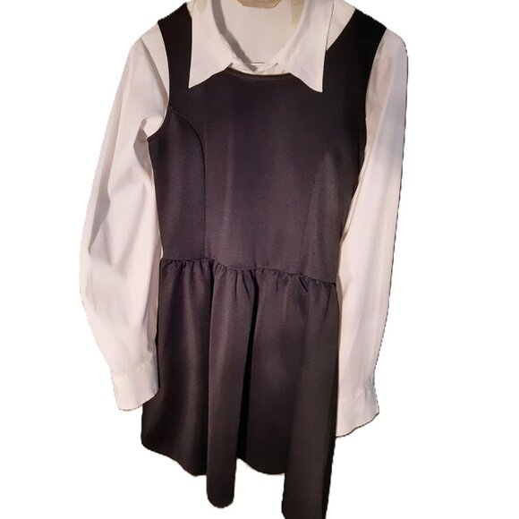 Classic vintage Bluenotes dress, mini to wear over blouse or sleeveless. Back zipper. Has a great look. White shirt not included.