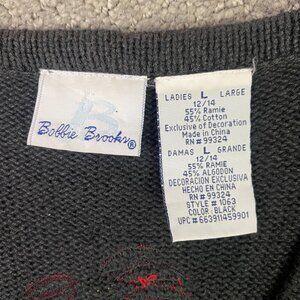Vintage Bobbie Brooks Ugly Christmas Sweater Vest Women's Large Black Poinsettia
