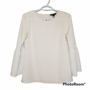 T shirt has been well worn and has stains. There is a hole on the collar. creamy off white color