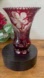 Vintage Bohemian Czech Ruby Red Cut to Clear Crystal Vase Etched Floral Design