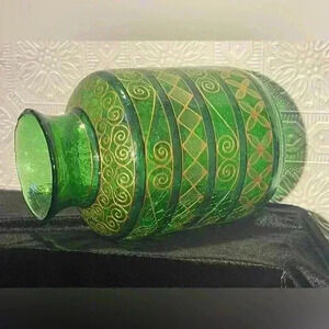 Vintage Bohemian Green Crackle Gold-Gilded Vase