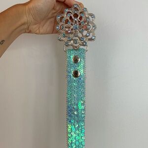 @kittydevillexx the full length including the metal flower is approx 44.5 inches, the actual belt is approx 42 inches and the length to the holes is approx 33.5 inches ☺️