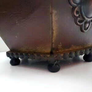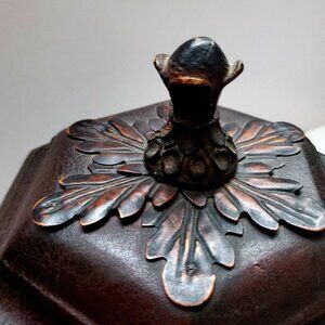 Rich & Bold Home Decor * Antiqued Hexagon Design * Lightweight wood & metal detailing * Pineapple Style Finial Lid * Footed Base