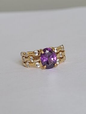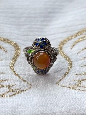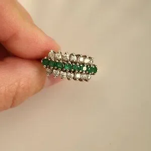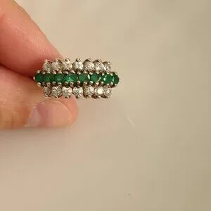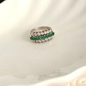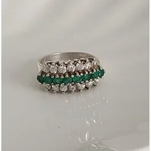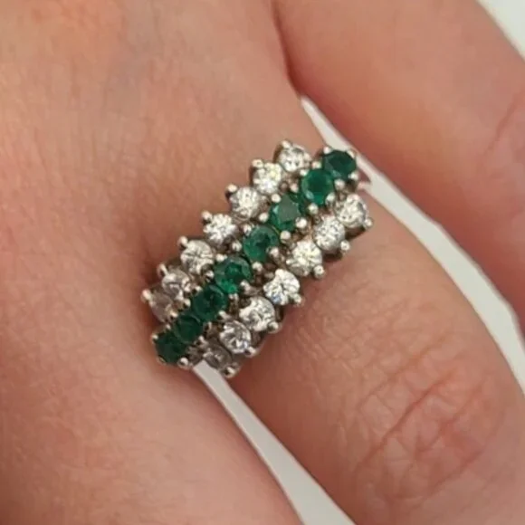 Vintage Boho 3 Row Crystal Natural Emerald Sterling Silver 925 Cocktail Ring 6.2