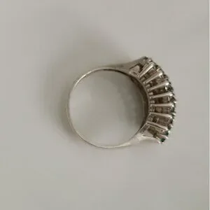 Unique 3 Row Crystal Natural Emerald Sterling Silver 925 Cocktail Ring