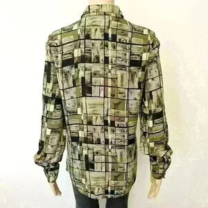 Vintage Boho Artsy Earthy Pattern Oversized Hippie Button Down Shirt Blouse.