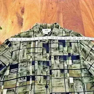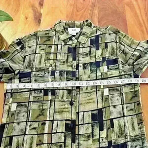 Vintage Boho Artsy Earthy Pattern Oversized Festival Hippie Colorblock Slouchy Relaxed Fit Long Sleeves Button Down Shirt Blouse.