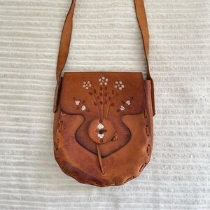 Vintage Boho Hippie Hand Tooled Leather Shoulder Bag