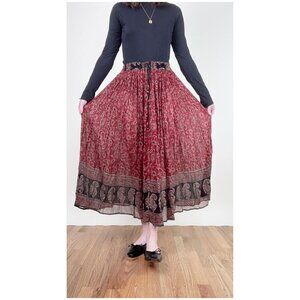 Stunning Vintage Boho Maxi Midi Skirt Pleated High Low Rise Hippie Bohemian Flowing