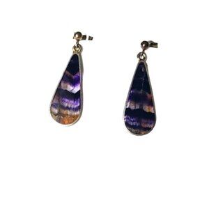Vintage Boho Rare Sterling Silver Blue John Gemstone Purple Drop Dangle Earrings