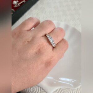 Sterling Silver 925 Vintage 5 Stone Square Princess Cut Crystal Ring