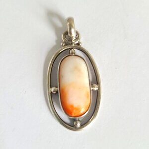 Vintage Boho Western Sterling Silver Orange Scolecite Gemstone Large Oval Pendant 1.5 inches Pre Owned in Excellent Condition sku 8783.7