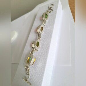 Vintage Boho Sterling Silver Yellow Rainbow Topaz Oval Chain Link Bracelet