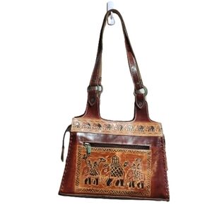 Vintage Boho hippie hand made carved leather shoulder bag